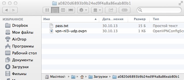 3. Откройте файл с конфигурационного файла ovpn в программе Tunnelblick.